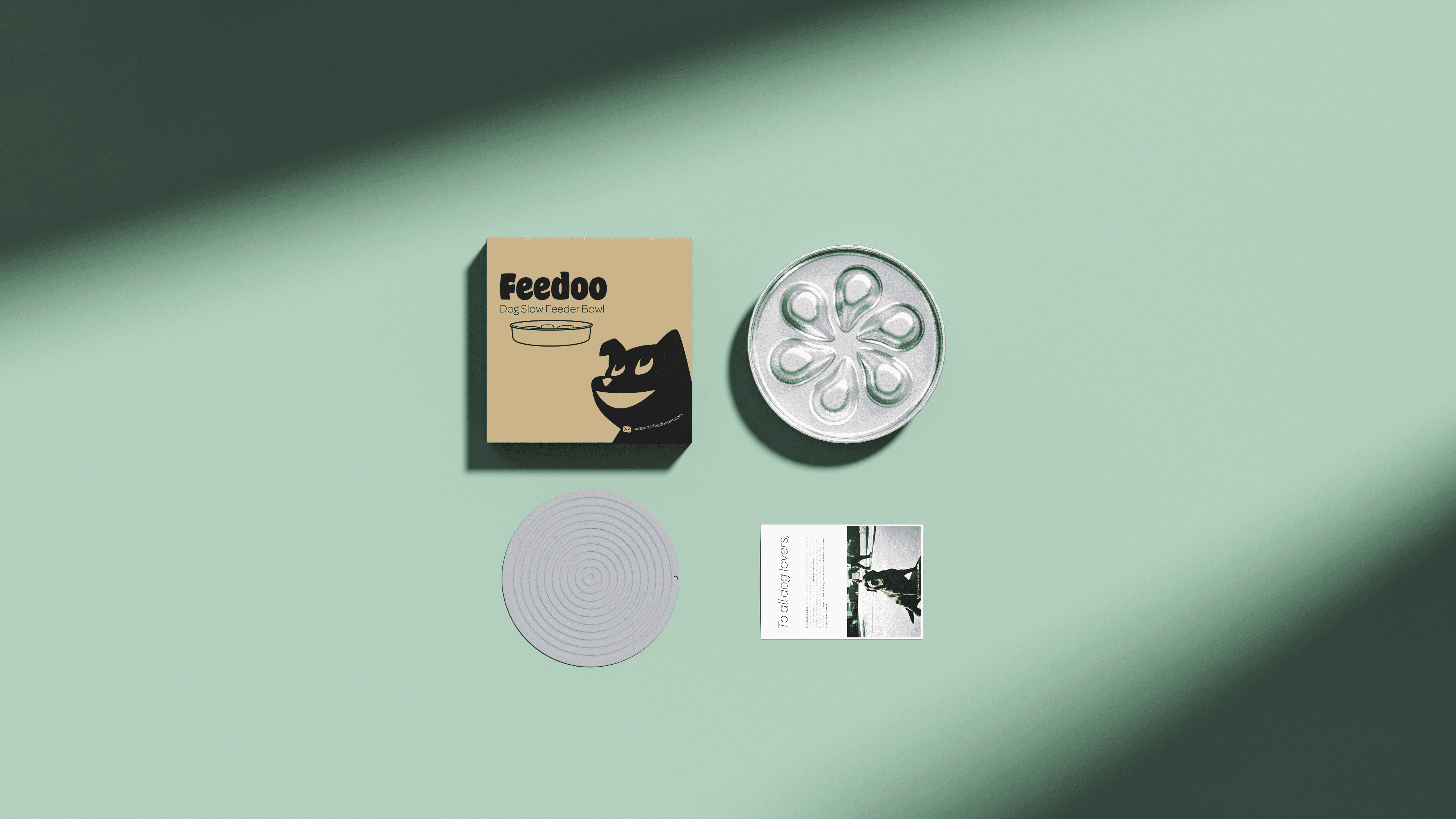 Inside the box, we included a small postcard as a quiet reminder of why the product exists. Rather than functioning as promotion, it helped frame Feedoo around everyday care — healthier eating habits, safer routines, and closer attention to pet wellbeing. It also became a way to communicate the long-term value behind the product, from material choices to durability.